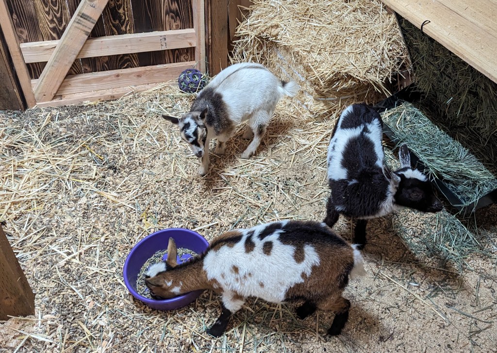 We purchased three 10-week-old doelings and brought them home as soon as the barn was secure enough to house them. The joy and connection was instantaneous. These gentle, inquisitive creatures captured our hearts from the first moment. We were hooked.